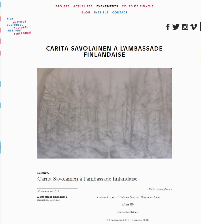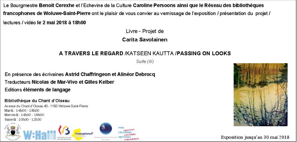 Exposition/lectures/performances autour du livre-projet de Carita Savolainen, À travers le regard, le jeudi 14 juin 2018 à l'ambassade de Belgique de Helsinki, Finlande